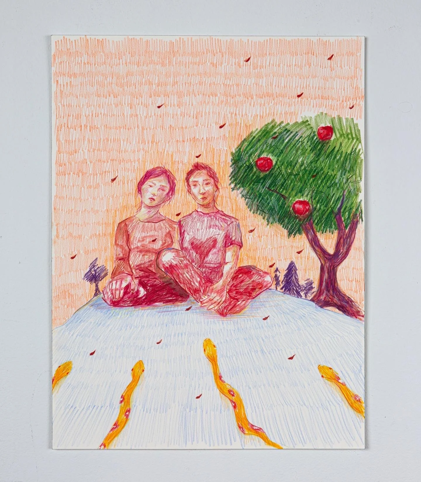 I wonder who picks the fruit now, Oil pastel, 2023